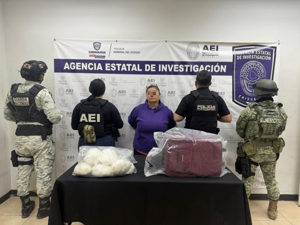 El aseguramiento fue resultado de un operativo conjunto entre autoridades estatales y federales en un fraccionamiento de la ciudad. Elementos de la Agencia Estatal de Investigación, en coordinación con el Ejército Mexicano y la Guardia Nacional, detuvieron en flagrancia a una mujer por delitos contra la salud en Ciudad Juárez, tras encontrarle una importante cantidad de droga. La detenida fue identificada como Juana Araceli R. C., de 52 años de edad, quien fue interceptada en la calle Granada del fraccionamiento Villa Residencial del Real, donde las autoridades realizaban acciones de vigilancia y prevención. Durante una revisión, los agentes localizaron ocho paquetes confeccionados con fleje transparente que contenían una sustancia blanca y granulada con características propias de la metanfetamina conocida como cristal, con un peso total de 7.750 kilogramos. Además, se aseguró una maleta color guinda en la que se transportaba el enervante. El aseguramiento se logró como parte de los operativos conjuntos que mantienen las corporaciones de seguridad para combatir el tráfico y distribución de drogas en la región, particularmente en zonas con incidencia delictiva. Tras su detención, la mujer fue puesta a disposición del Ministerio Público del fuero federal, quien será el encargado de dar seguimiento a las investigaciones y determinar su situación jurídica conforme a la ley. Las autoridades reiteraron que este tipo de acciones buscan reforzar la seguridad en la ciudad y prevenir la circulación de sustancias ilícitas que afectan a la población. Cabe señalar que, de acuerdo con el artículo 13 del Código Nacional de Procedimientos Penales, la imputada se presume inocente mientras no se declare su responsabilidad mediante sentencia emitida por la autoridad judicial. Navegación de entradas Reitera Municipio cierre en periférico de la Juventud por obras de agua potable en Chihuahua Cofepris emite alerta sanitaria por medicamentos falsificados y productos irregulares